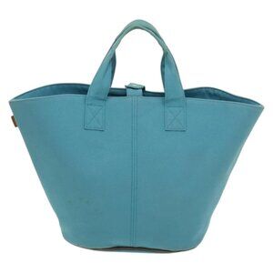 HERMES Panier Plage GM Tote Bag Canvas Blue Silver Auth mr1445