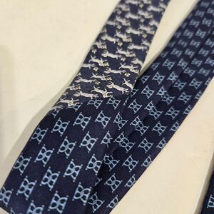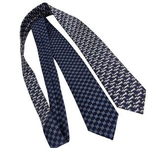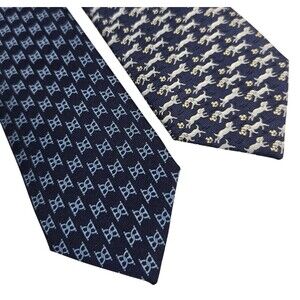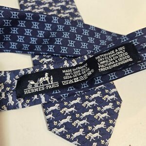 HERMES Paris Double Silk Tie Reversible 2 Patterns Dog/ball + Equestrian horse bit