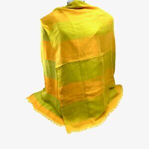 #34 Vintage HERMES Paris Light Green Orange yellow gp;d Chiffon 100% Silk Scarf features a Logo H Printed all over and Fringe accents, showcasing a vintage touch. Made of luxurious silk chiffon, this 70"x28" rectangle scarf is perfect for all seasons and adds a touch of elegance to any outfit. Made In France.