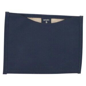 HERMES Petit Ash Pouch Leather Canvas Navy Auth