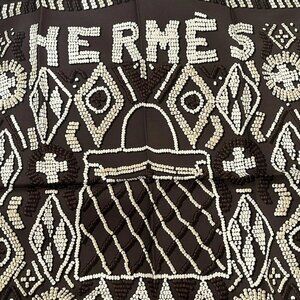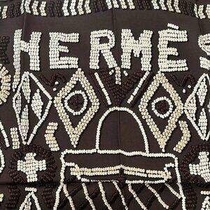 HERMES Petit Carre - Dark Brown Cream Scarf 299-072525