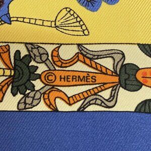 HERMES Petit Carre - Navy Yellow Multi Scarf 126-072325