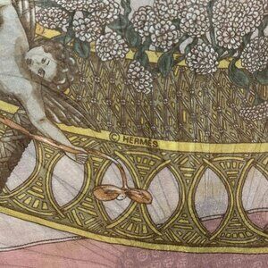 HERMES Petit Carre - Pink Brown Yellow Silk Scarf 151-072525