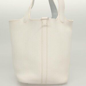 HERMES Picotan PM Hand Bag Leather White Silver Auth bs22497