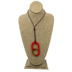 Hermes Red / Buffalo Horn Large Meyance Pendant Necklace on Adjustable Brown Cord