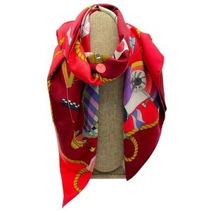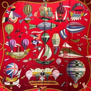 Hermes Red Les Folies du Ciel Print Square Silk Twill Scarf
