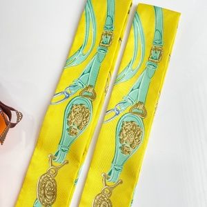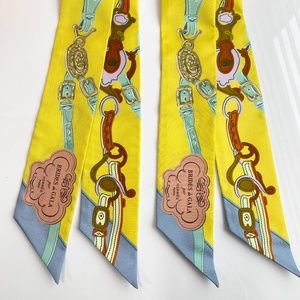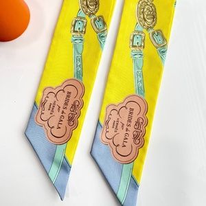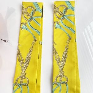 HERMES SILK YELLOW BEIGE BROWN BLUE Bandeau TWILLY WRAP SET OF 2