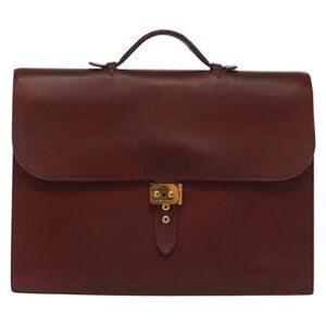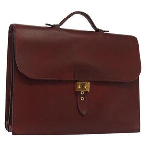 HERMES Sac Adepeche 40 Hand Bag Leather Bordeaux Gold Auth
