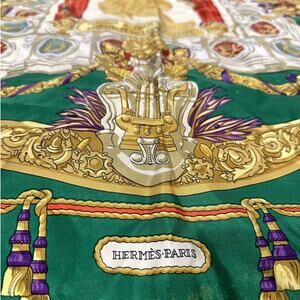 HERMES Scarf Silk Hommage A Charles Garnier Green -Preowned, no box, no care tag