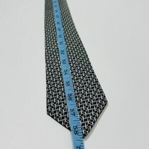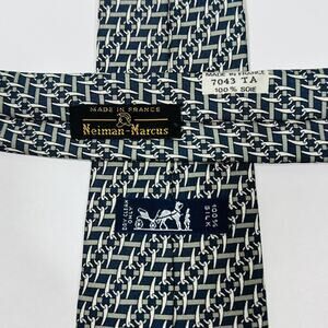 HERMES Tie Necktie Silk Handmade Tusk Chain Link Pattern 7043Dark Blue Beige