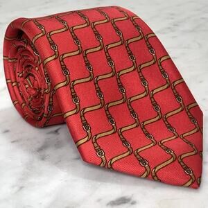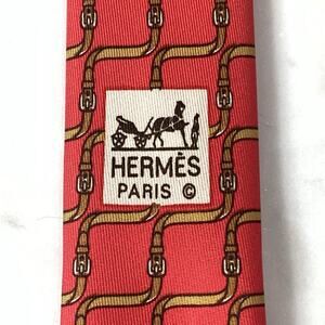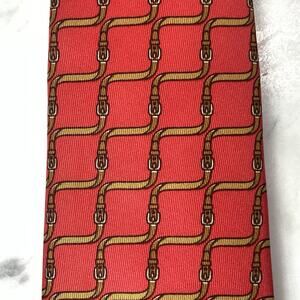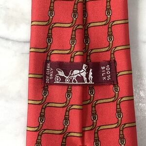 HERMES Tie Silk 55" x 3-1/8" Brown Belt on Red Necktie Neiman Marcus 7009 EUC