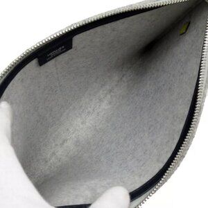 HERMES TooDoo Clutchbag gray x navy x yellow felt/VeauEpsom Leather