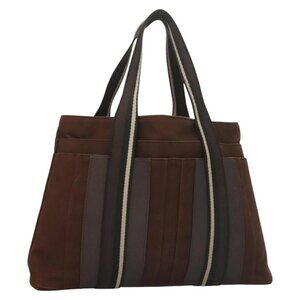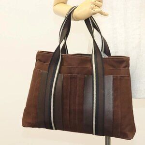 HERMES Trocha Horizontal Zonal MM Hand Bag Canvas Brown Black Auth bs26991