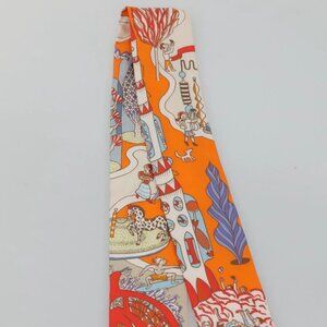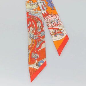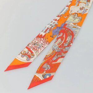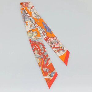 HERMES Twilly Scarf ""World's Fair"" Silk Orange Auth