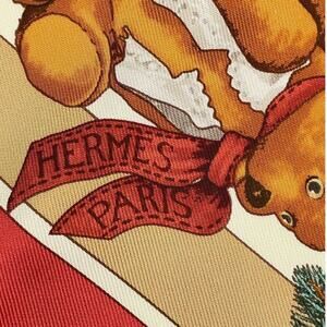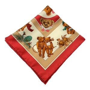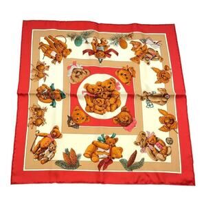HERMES Vintage Carré 40cm 16” Teddy Bear Red Multicolor Silk Scarf W/Box NWT