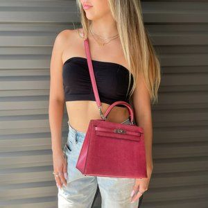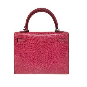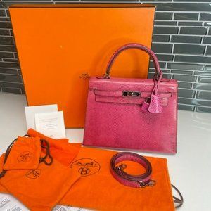 HERMES Vintage Kelly 25 Sellier Lizard "Fuchsia" Pink w/ Ruthenium Hardware