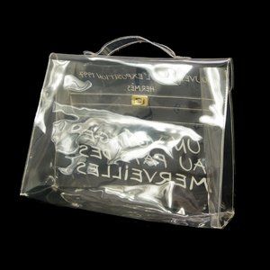 HERMES Vinyl Kelly Beach Hand Bag Purse SOUVENIR D