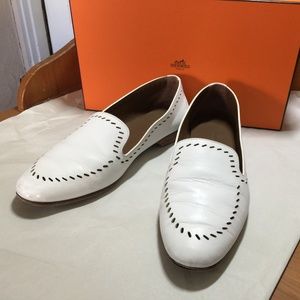 HERMES WHITE LEATHER LOAFERS PERFOR 36-6 flats slides sandals slip on pumps mule