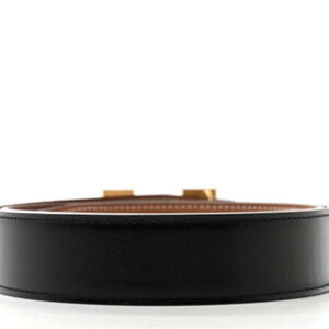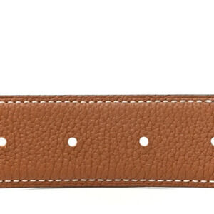 H Belt size 80 in Black and Gold. This stylish reversible belt is crafted of Togo leather in brown, with smooth black leather on the reverse and a brushed gold plated Hermes H buckle.