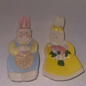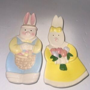 HERMITAGE POTTERY | VINTAGE CERAMIC EASTER BUNNY RABBITS SET OF 2