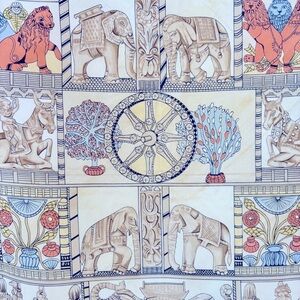 HERMÈS 100% Silk Scarf Carre 45 Toran Tower Gate Elephant Light Grey Silk