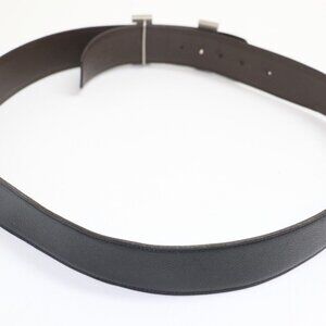 HERMÈS 95 H Guillochee Buckle Reversible Belt Noir/Silver Leather Strap