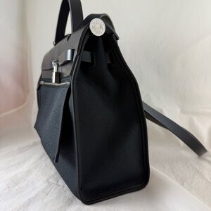 HERMÈS Herbag Zip 31 bag in Black canvas & black leather, silver color hardware. In good condition. No wear on corners and no stains inside the bag. Both leather and hardware have some scratches as seen in the photos. 100% authentic. Includes original box, dust bag, lock & clochette. Will also include the black Samorga felt bag insert.