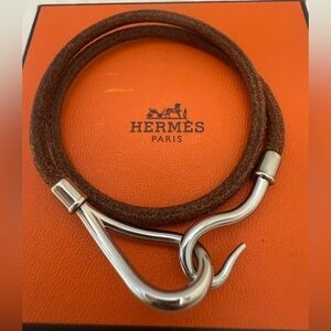 HERMÉS Jumbo Double Wrap Leather Silver Tone Bracelet/Choker