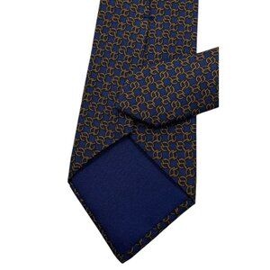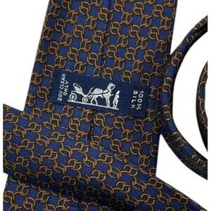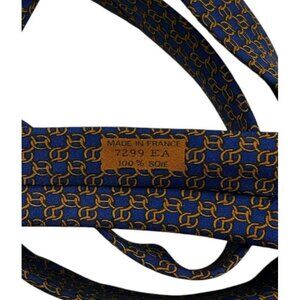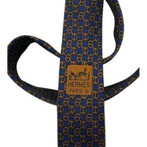 HERMÈS Men's 100% Silk Necktie LUXURY Tie 7299 EA Blue Chain W:3.2" EUC