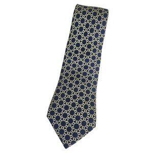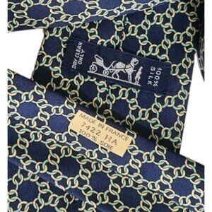 HERMÈS Men's 100% Silk Necktie LUXURY Tie 7422 HA Blue Chain W:3.6" EUC