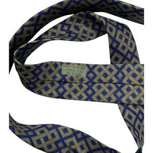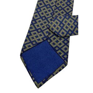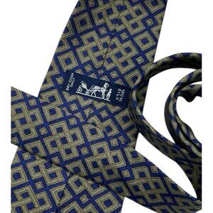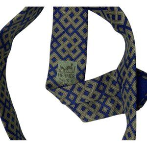 HERMÈS Men's 100% Silk Necktie LUXURY Tie 7656 TA Blue Geometric W:3.5" EUC