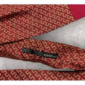 HERMÈS Silk Ascot Cravat FRANCE Red Gold Chain EUC