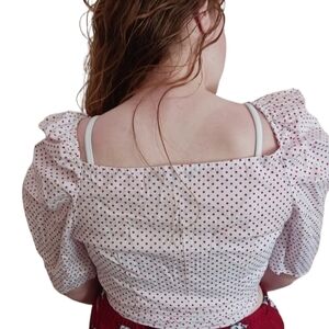 HERS AND MINE RED SWISS DOT WRAP AROUND TOP WITH PUFF SLEEVES