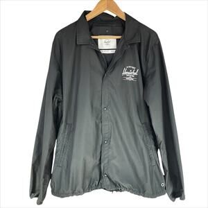 HERSCHEL Voyage Coach Jacket Black Windbreaker w/ Retro Printed Logo Size XL
