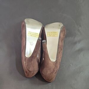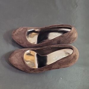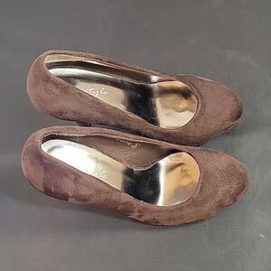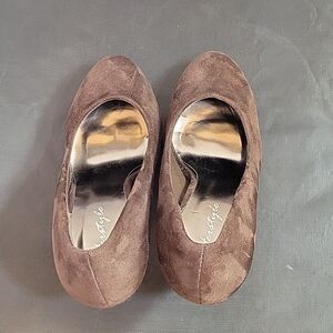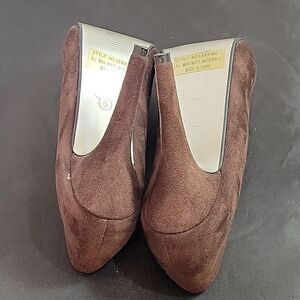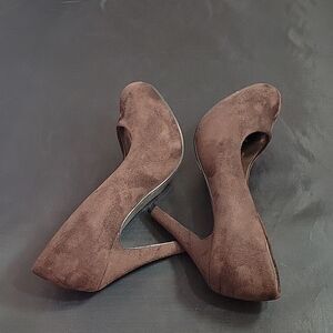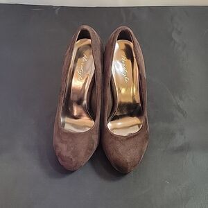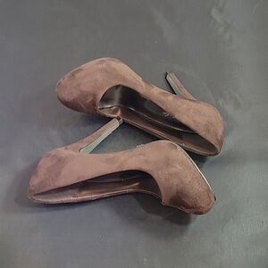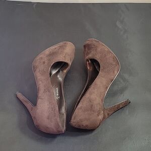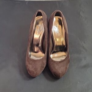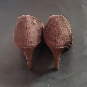 HERSTYLE SUEDE ROUND TOE HIGH HEEL STILETTOS PUMP SHOE SIZE 5 COLOR DARK BROWN MADE WITH ALL MAN MADE MATERIALS HEEL HEIGHT MEASUREMENTS APPROX 4"INCHED THIS ITEMS IS PRE-OWNED EXCELLENT CONDITION YOU MIGHT MISTAKE FOR NEW CHECK THE PICTURES