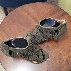 HERSTYLE WOMEN"S OPEN TOE BACK ZIPPER CLOSURE SANDAL SIZE 7 COLOR OLIVER GREEN HEEL MEASUREMENTS APPROX 4"+ INCHES MANMADE MATERIALS THIS ITEMS IS PRE-OWNED EXCELLENT CONDITION YOU MIGHT MISTAKE FOR NEW CHECK THE PICTURES