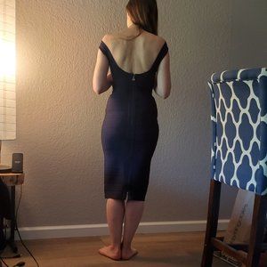 Authentic Herve Leger Ardell dress. It is pre-owned. Has been worn twice and then dry-cleaned. Instructions indicate that it has to be only dry-cleaned and not washed. Size Small. I have attached stock photos as well as pictures of me in it to help understand the sizing. I am 5'5 130 lbs, and 32C chest size. Tags are obviously cut off, but I can include them.