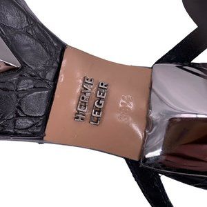 HERVE LEGER Black Rhinestone Studded Platform Stiletto Sandals Size 38.5