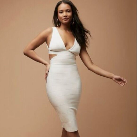 HERVE LEGER FOREVER 21 Bandage White Midi Dress with cutouts Sz Medium NWOT