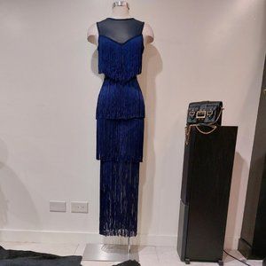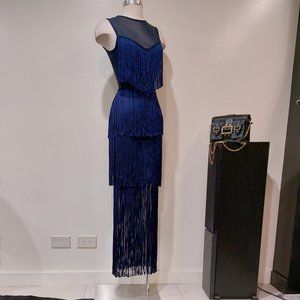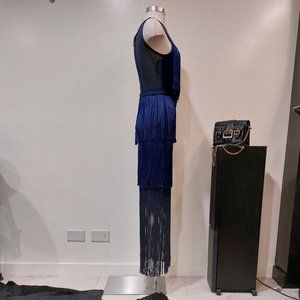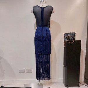 HERVE LEGER ILLUSION LUREX FRINGE GOWN in MIDNIGHT BLUE