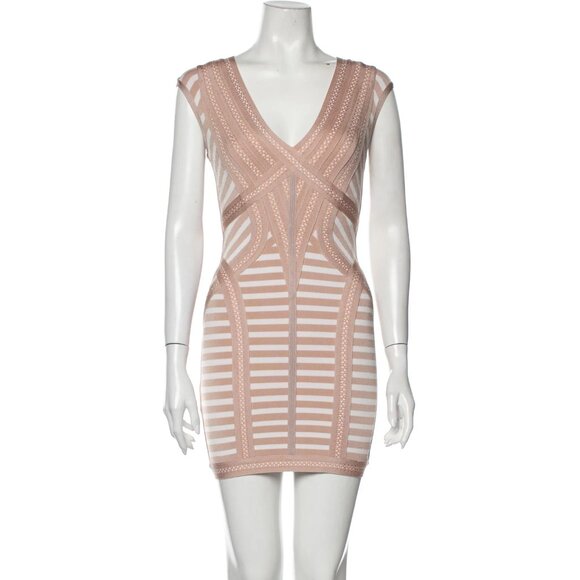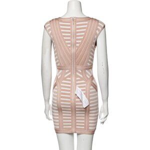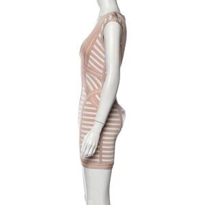HERVE LEGER Katina Cream Stretch Striped Jacquard Knit Mini Dress - Small