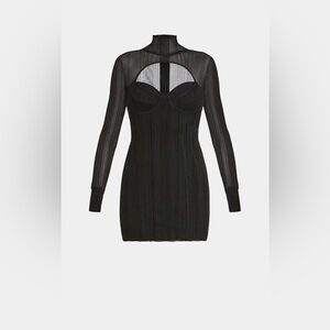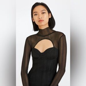 HERVE LEGER / NWT NEW layered sheer ribbed plated mini dress in black small s