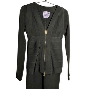 HERVE LEGER Pants & Jacket suite black banded bandage zip front Blazer Sz small