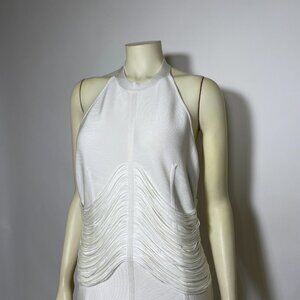 HERVE LEGER White Knit Draped Fringe 'Natalie' Gown