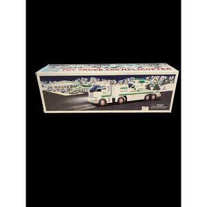 The product is a Hess collectible toy model vehicle set from 2006, featuring a truck and helicopter in a multi-color design. This original set is new in box and is themed around gas and oil, making it a perfect addition to any Hess or gas and oil memorabilia collection. With the iconic Hess brand, this toy set is a nostalgic and collectible item that is sure to appeal to enthusiasts of both Hess merchandise and vintage toys.