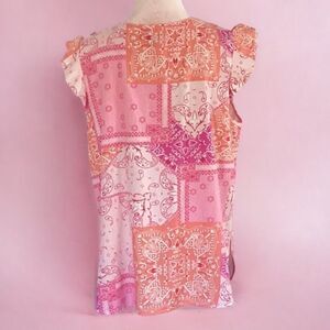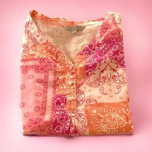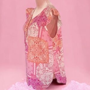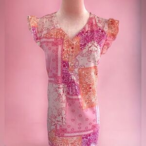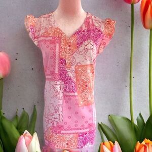 Small 3 buttons in front Ruffle sleeves Pit to pit 21” Length 26-1/2”