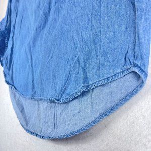 HESTER & ORCHARD Womens L Blue Chambray Lace Ruffle Sleeve Ribbon Tie Back Top