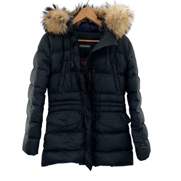 Excellent condition Size 42 Italian Armpit to armpit 18” Length 28” Missing inside the jacket waist string, does not affect the function or the design of the jacket Full zip Zipped front pockets Large button closure pockets Logo charm on sleeve