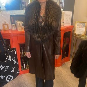 HETTABRETZ LEATHER AND FUR COAT NWOT SIZE 42