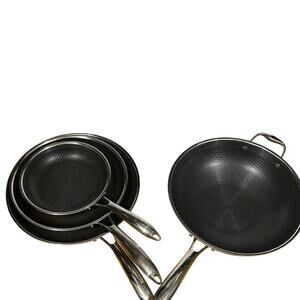 HEXCLAD 4 Piece Nonstick Stainless Steel Frying Pan Set 8 10 12 Wok $600